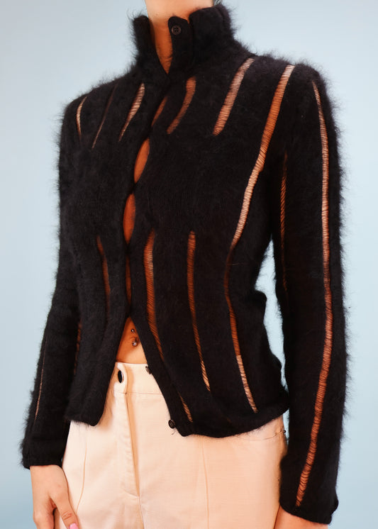 Yves Saint Laurent Fall 2001 Black Mohair Laddered Cardigan