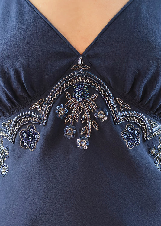 Dior Spring 2006 Navy Silk Beaded Camisole Top