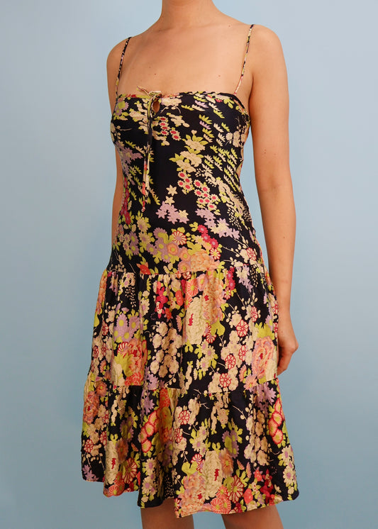 Betsey Johnson Black Floral Print Silk Dress