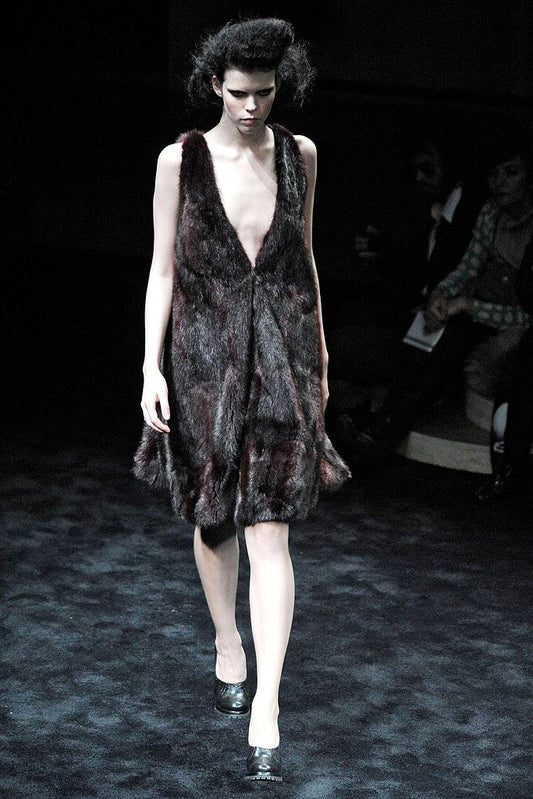 Prada Fall 2009 Runway Burgundy Fur Plunge Dress