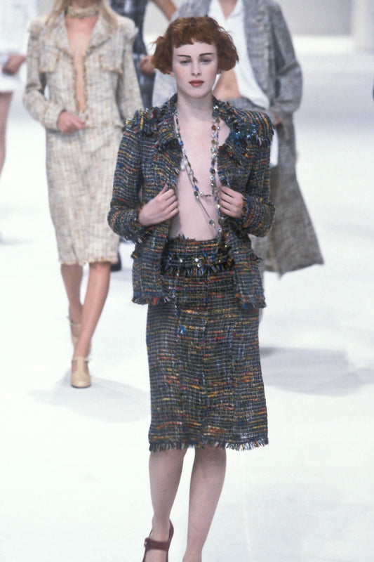 Chanel Spring 1998 Runway Rainbow Tweed Jacket & Skirt Suit Set