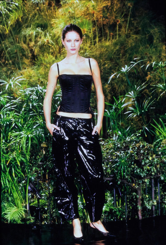 Dolce & Gabbana Spring 1999 Runway Black Satin Built in Bra Corset Top