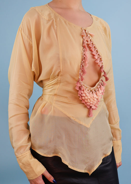 Gucci Spring 2005 Cream Tassel Open Front Silk Blouse Top