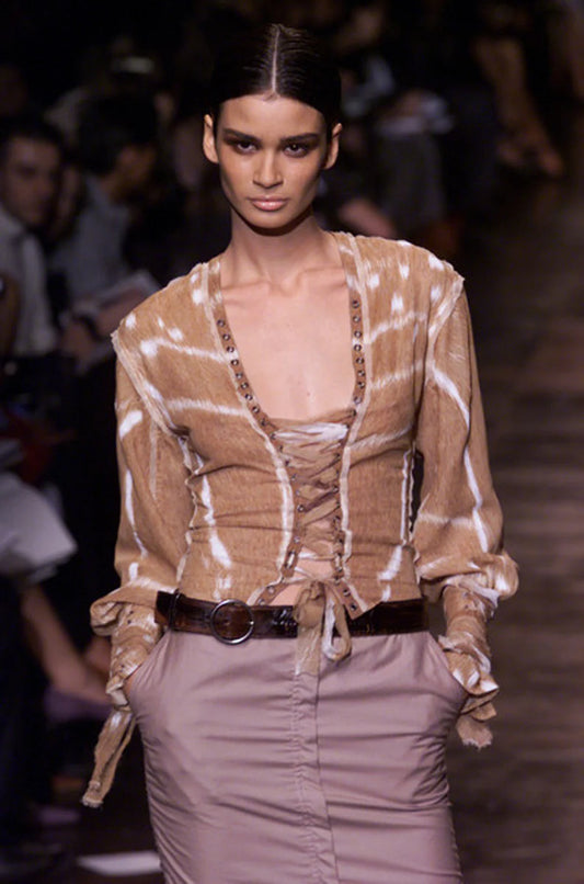 Yves Saint Laurent Spring 2002 Black Silk Lace Up Top