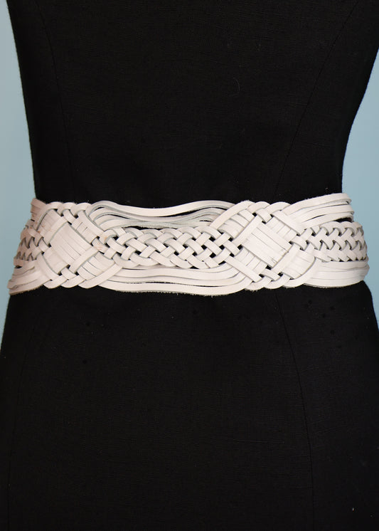 Roberto Cavalli Mother of Pearl Buckle White Woven Leather Belt