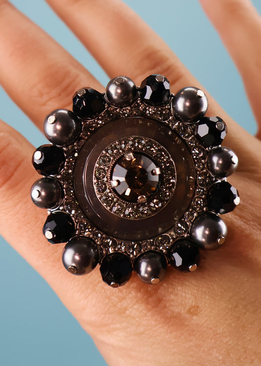 Lanvin Fall 2003 Black & Grey Crystal Cocktail Ring