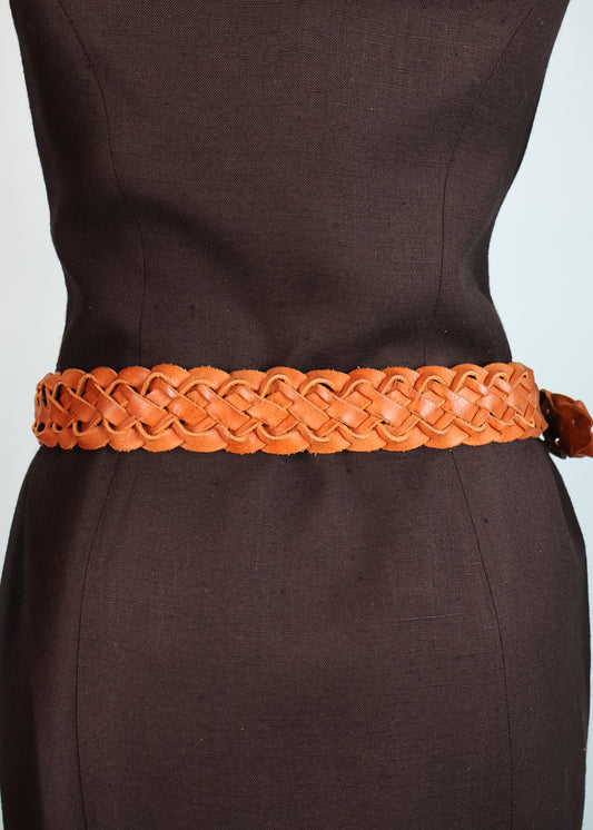 DSquared2 Seaside Buckle Brown Leather Woven Belt