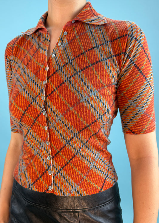 John Galliano Fall 2000 Plaid Cashmere Button Down Top