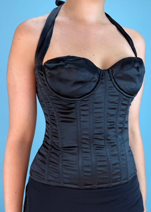 Roberto Cavalli Spring 2004 Black Silk Halter Corset Top