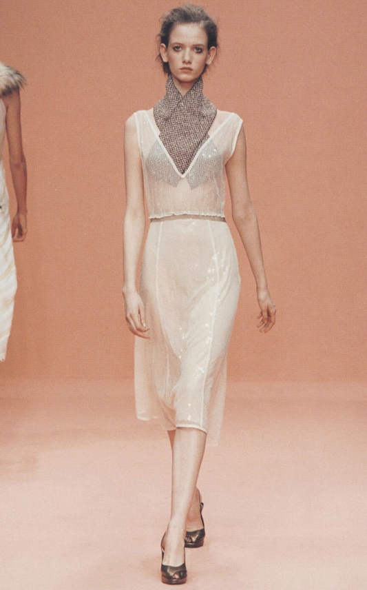 Alexander McQueen Fall 1998 Grey Slashed Mesh Insert Dress