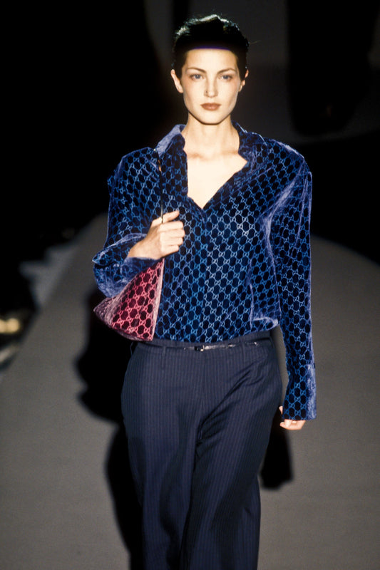 Gucci Fall 1997 Runway Navy Blue Velvet Monogram Shirt