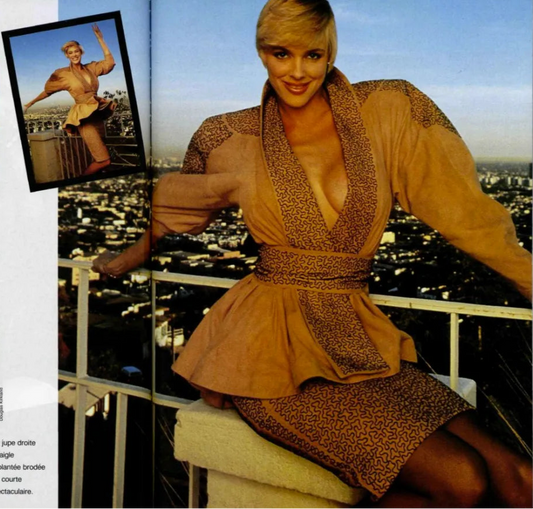 Jean Claude Jitrois 1987 Brown Suede Leather Squiggle Jacket & Skirt Set