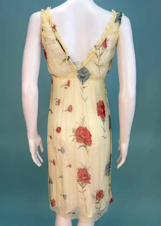 Prada Floral Silk Chiffon Sheer Dress & Slip