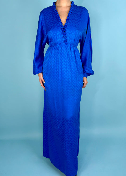 Balenciaga 1980’s Blue Monogram Silk Wide Sleeve Maxi Dress