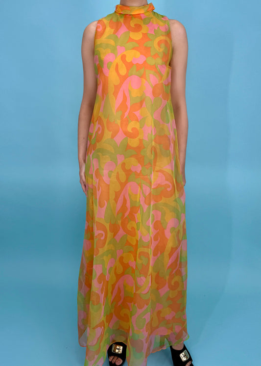 1960’s Psychadelic Swirl Trapeze Maxi Dress