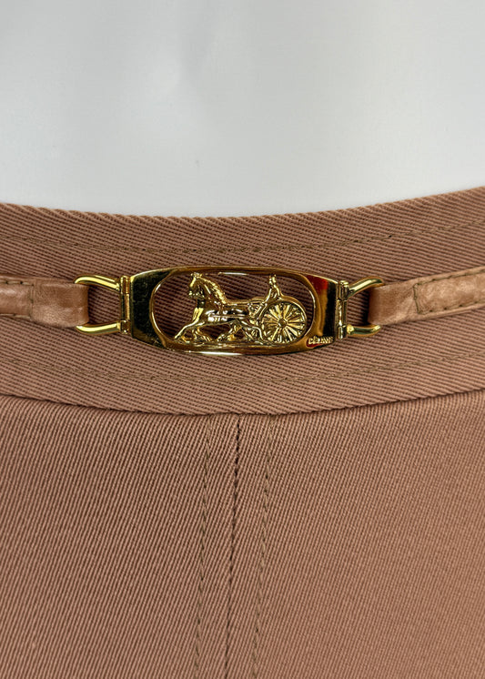 Celine 1970s Beige Wool Metal Buckle Belt Skirt
