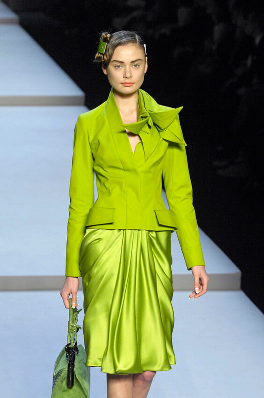 Chloé Spring 1991 Runway Green Silk Corsage Strapless Gown