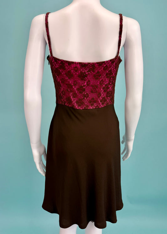 Christian Lacroix Bazar Pink & Brown Tie Up Detail Dress