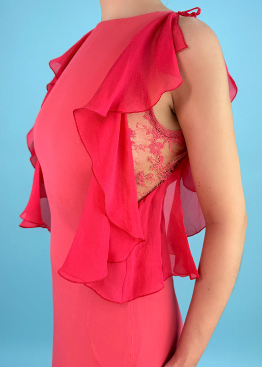 Valentino Coral Lace Sides Silk Chiffon Gown
