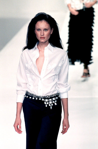 Valentino Spring 1999 Floral Embroidered Silk Shirt