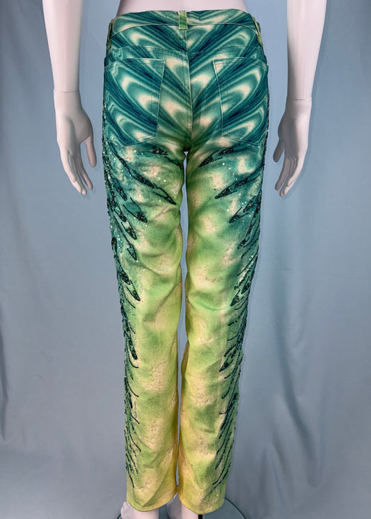 Roberto Cavalli Spring 2001 Bead Embellished Green Jeans