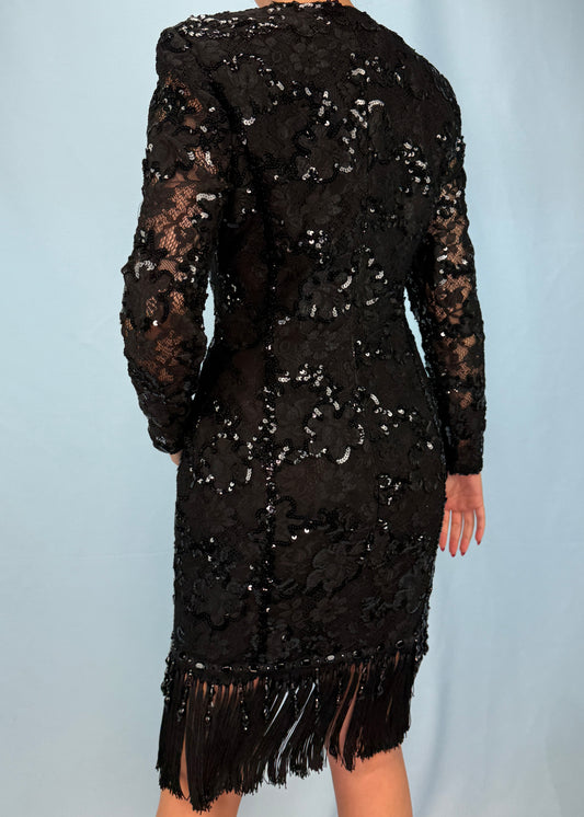 Alexander McQueen Spring 1998 Black Floral Embroidered Dress