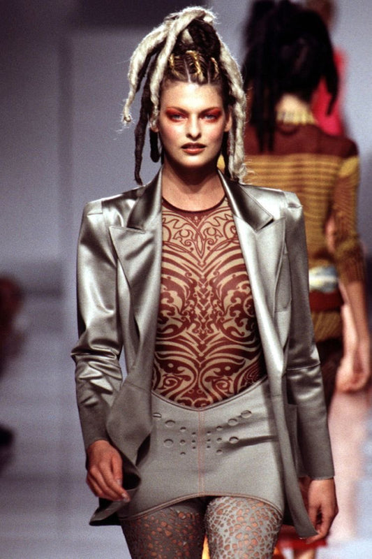 Jean Paul Gaultier Spring 1996 Tribal Print Red Mesh Dress