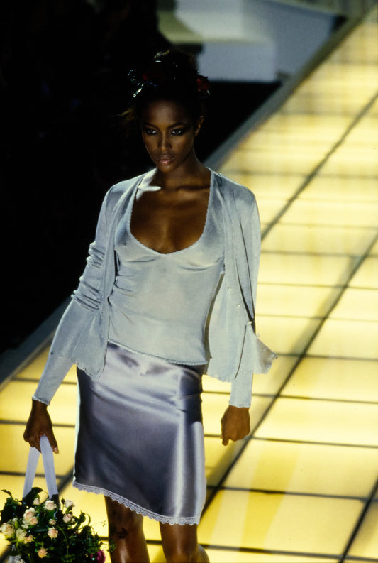Versace Spring 1997 Grey Silk Lace Trim Blouse Shirt