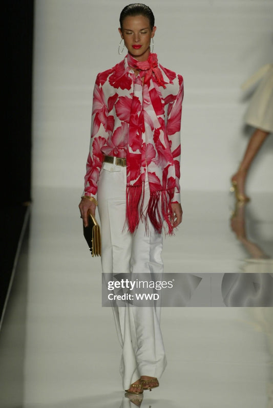 Celine Spring 2004 Runway Pink & White Hibiscus Silk Shirt