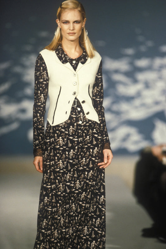 Chloé Fall 1996 Runway Paris Print Button Down Dress
