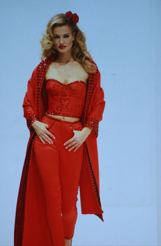 Vivienne Westwood Fall 1989 Runway Red Wool Orb Button Dress