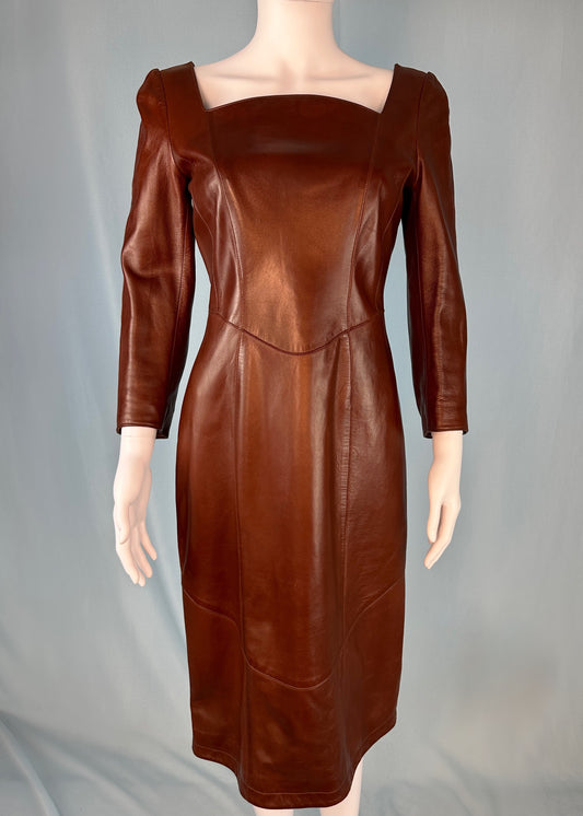Thierry Mugler Fall 1999 Brown Leather Contour Dress