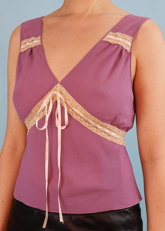 John Galliano Fall 2001 Purple Silk Chiffon & Lace Camisole Top