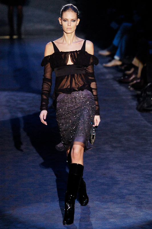Gucci Fall 2005 Runway Black Silk Off Shoulder Blouse Top