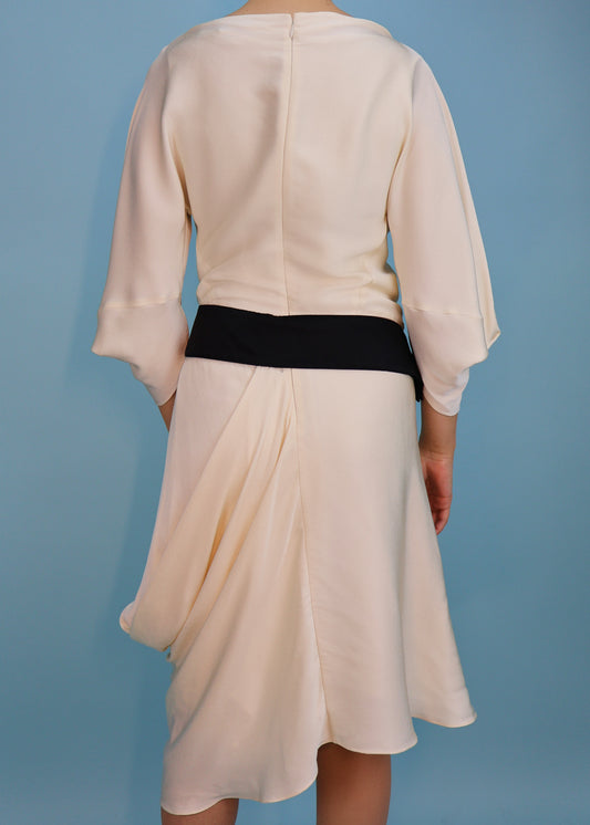 Alexander McQueen Fall 2007 Ivory & Black Asymmetric Draped Silk Dress
