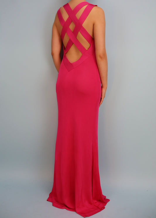 Alexander McQueen Pink Cowl Neckline Cross Back Strap Gown