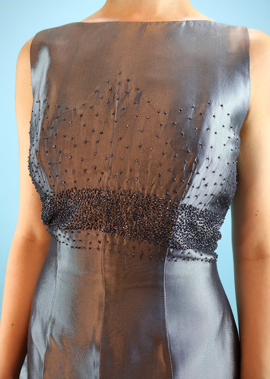 Prada 1990s Grey Beaded A-Line Dress