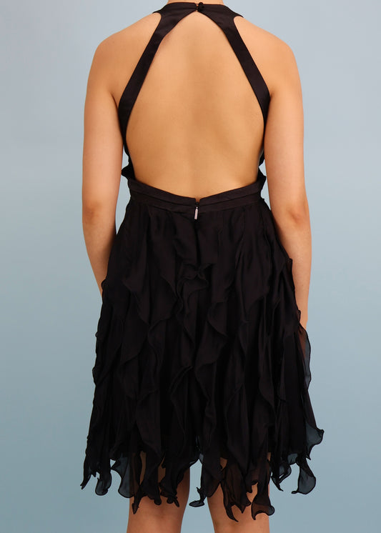 Roberto Cavalli Fall 2008 Black Silk Ruffle Halter Dress