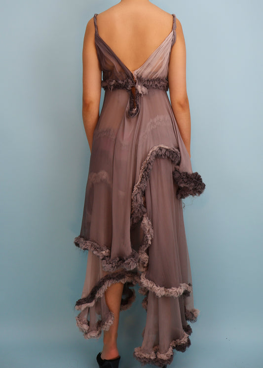 Alexander McQueen Fall 2006 Grey Silk Chiffon Layered Ruffle Gown