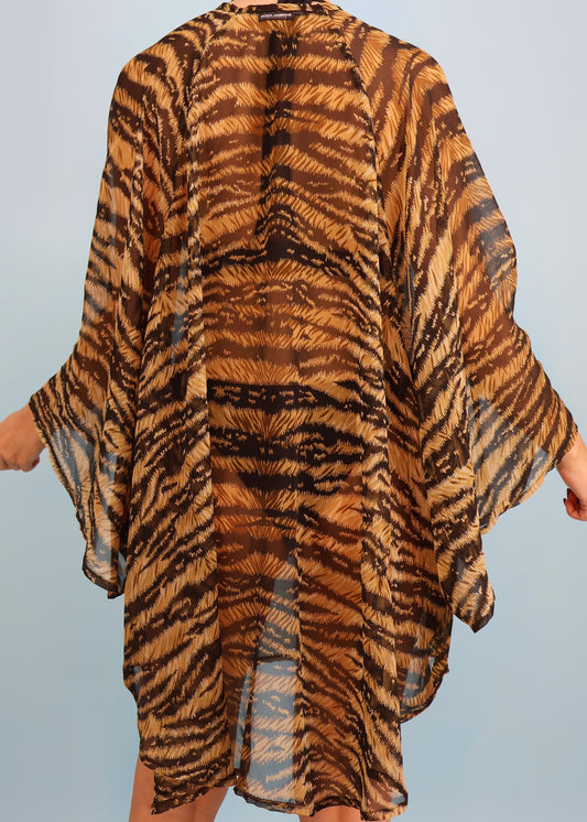 Dolce & Gabbana Tiger Print Silk Chiffon Kaftan Mini Dress