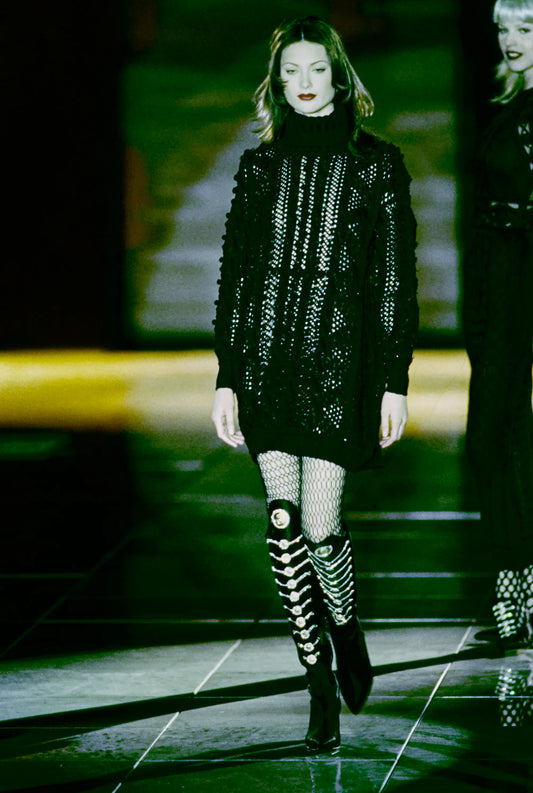 Versace Fall 1993 Navy Blue Knitted High Neck Sweater Dress