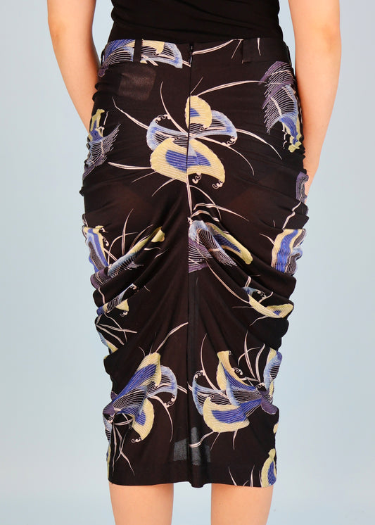 Dior Fall 2003 Prototype Black & Blue Floral Ruched Midi Skirt