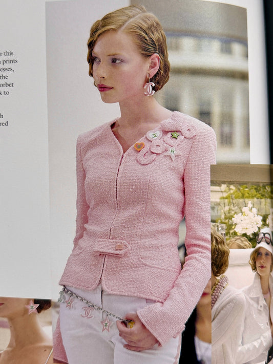 Chanel Cruise 2003 Runway Pink Tweed "Coco" Puffy Heart Jacket