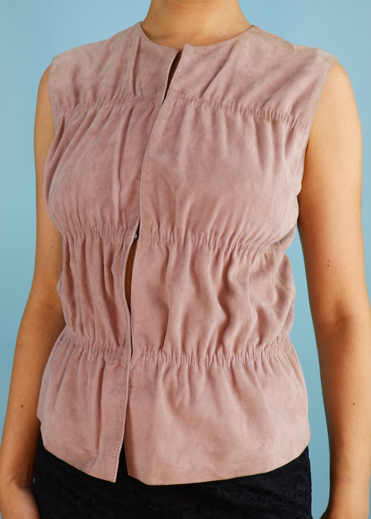 Gucci Fall 2002 Lilac Grey Suede Leather Shirred Vest Jacket