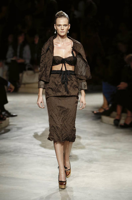 Prada Spring 2009 Runway Brown Crinkled Ribbon Detail Jacket