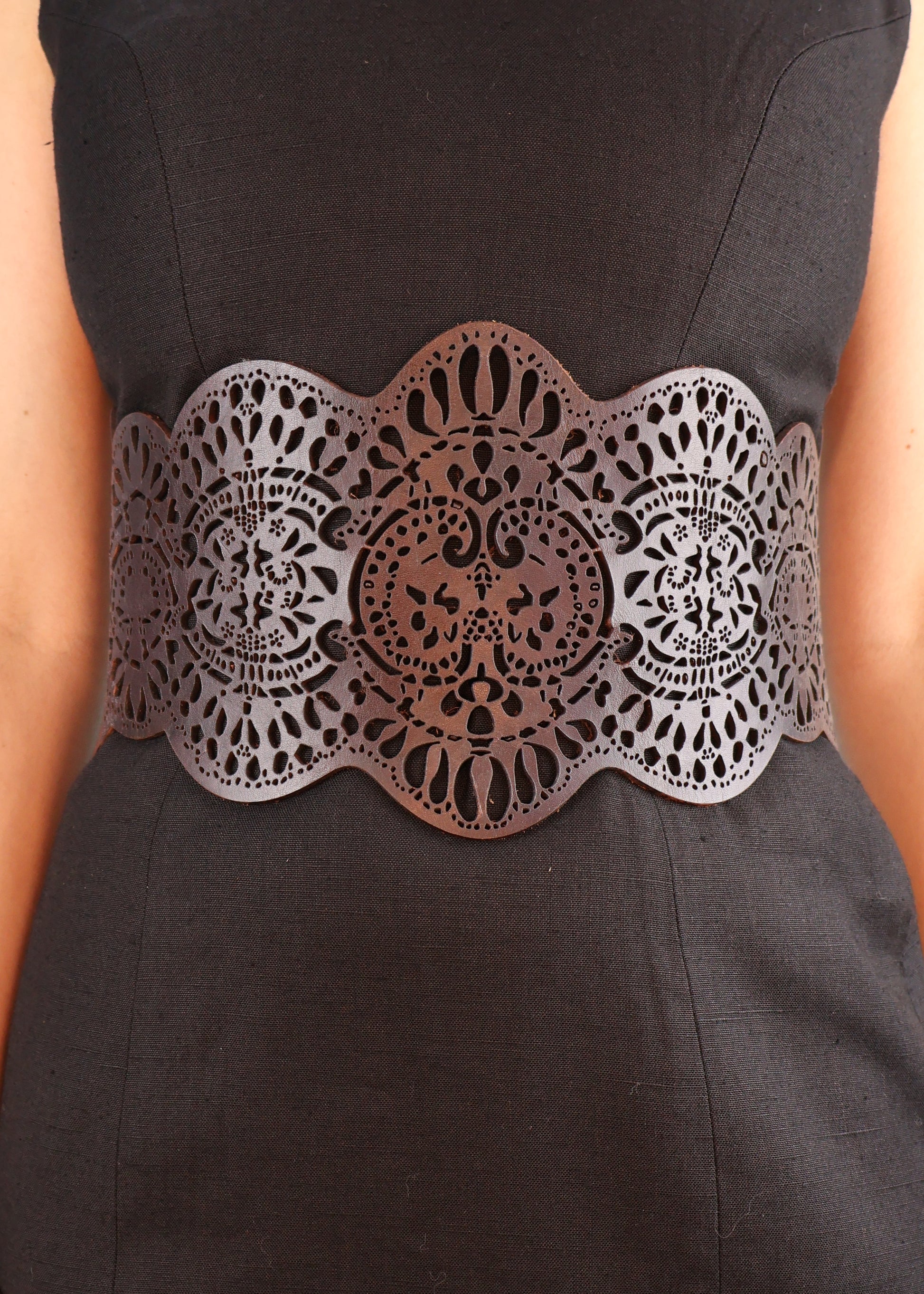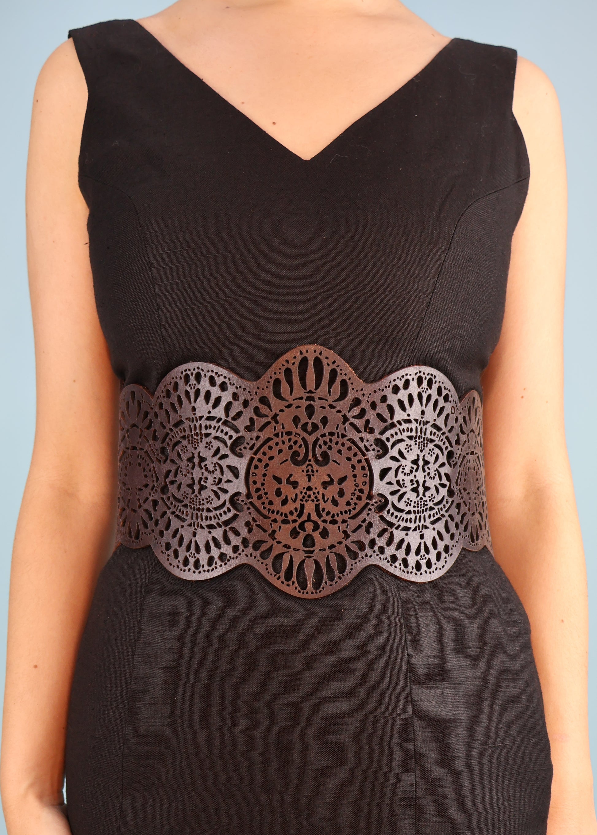 Alexander McQueen Fall 2006 Runway Brown Leather Laser Cut Out Belt