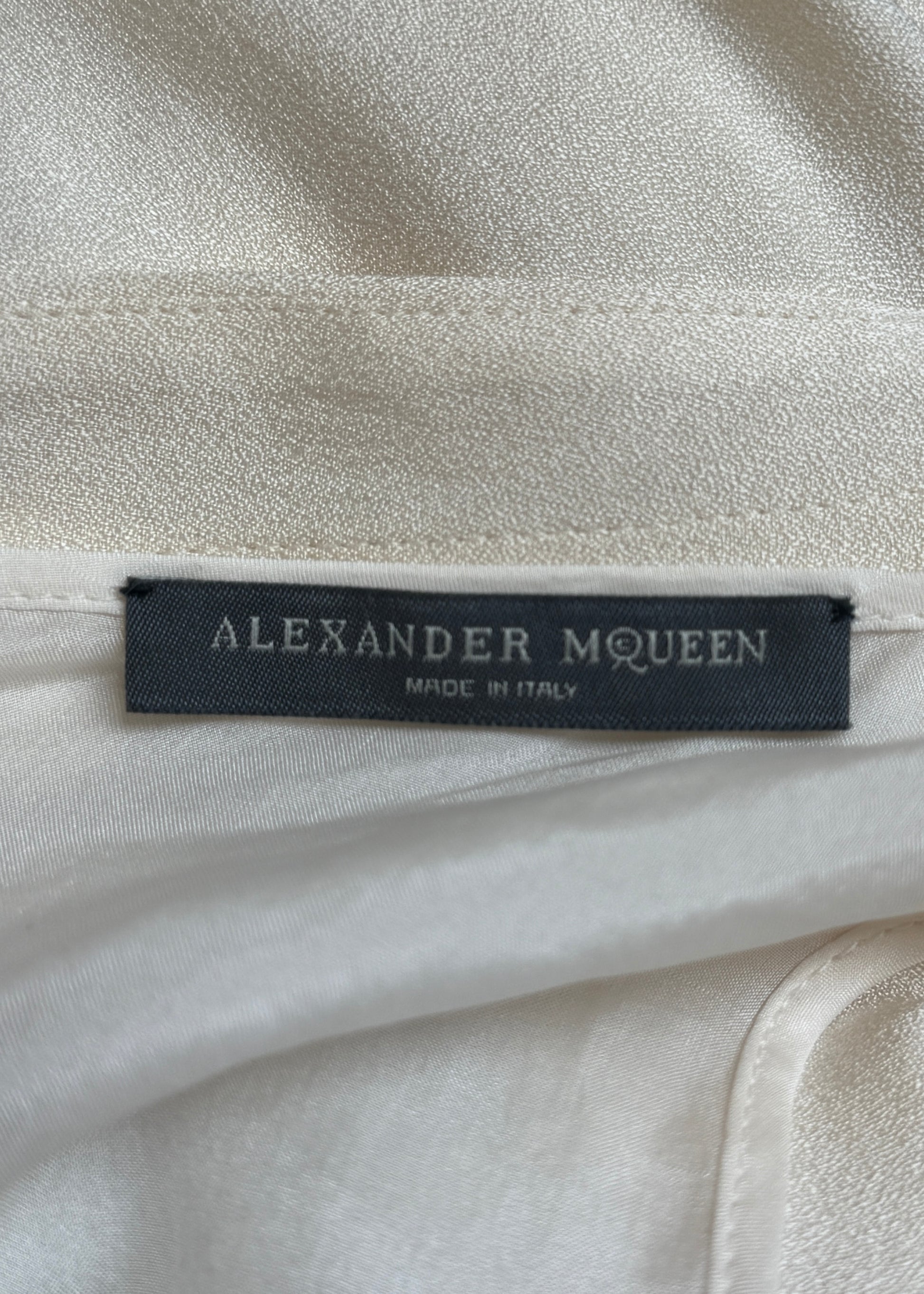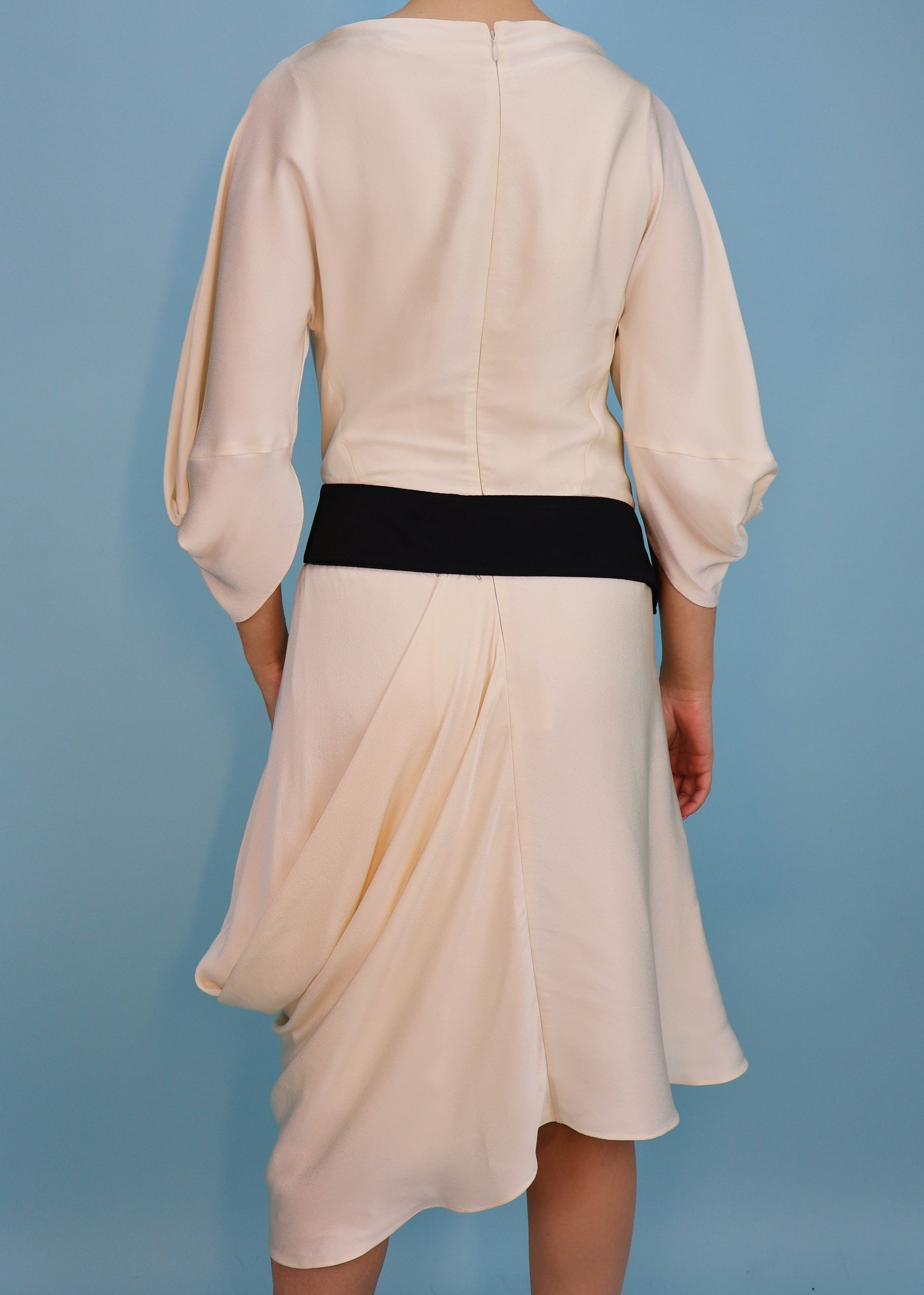 Alexander McQueen Fall 2007 Ivory & Black Asymmetric Draped Silk Dress