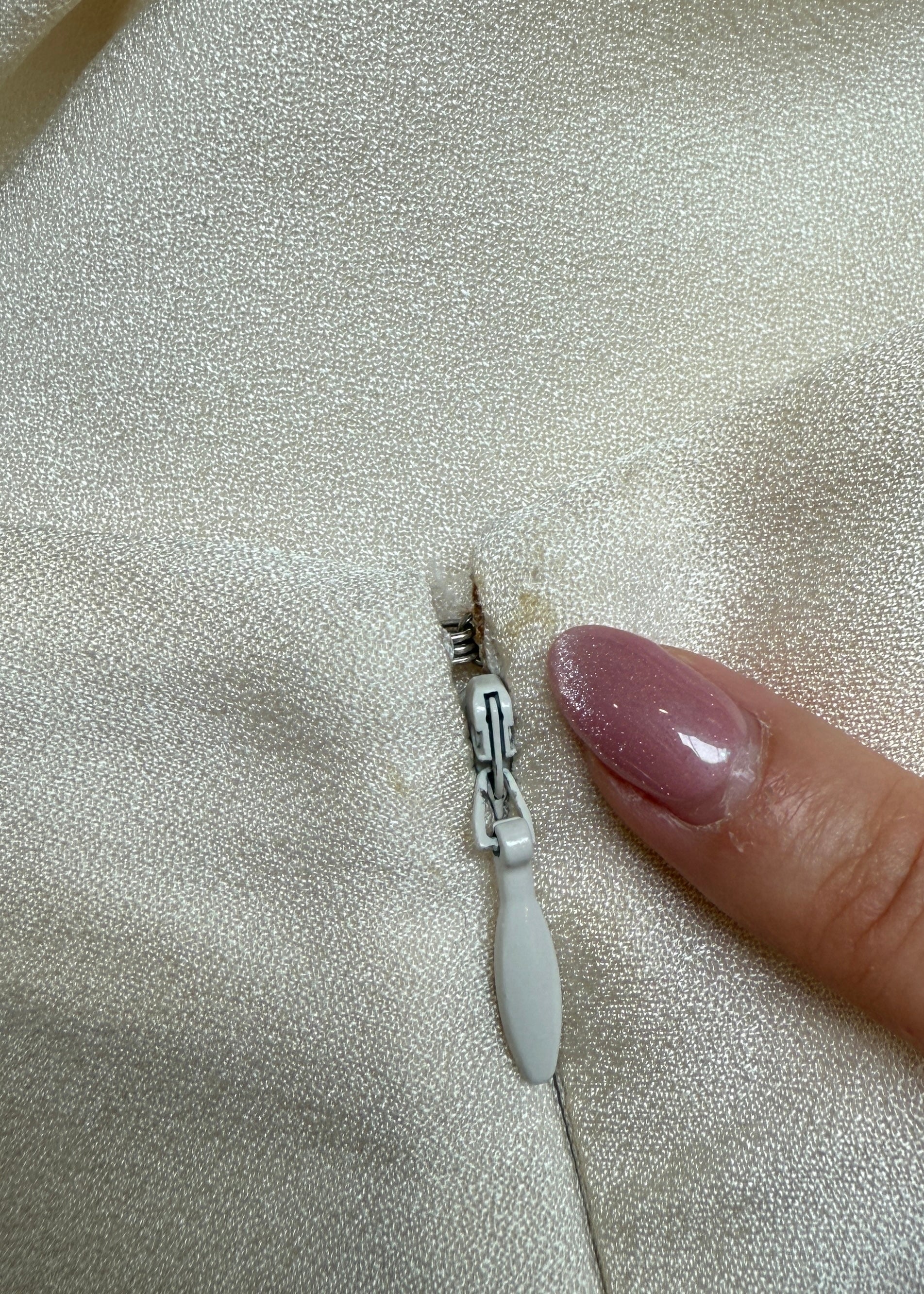 Black silk waistband with popper buttons, fastens to a point on one hip