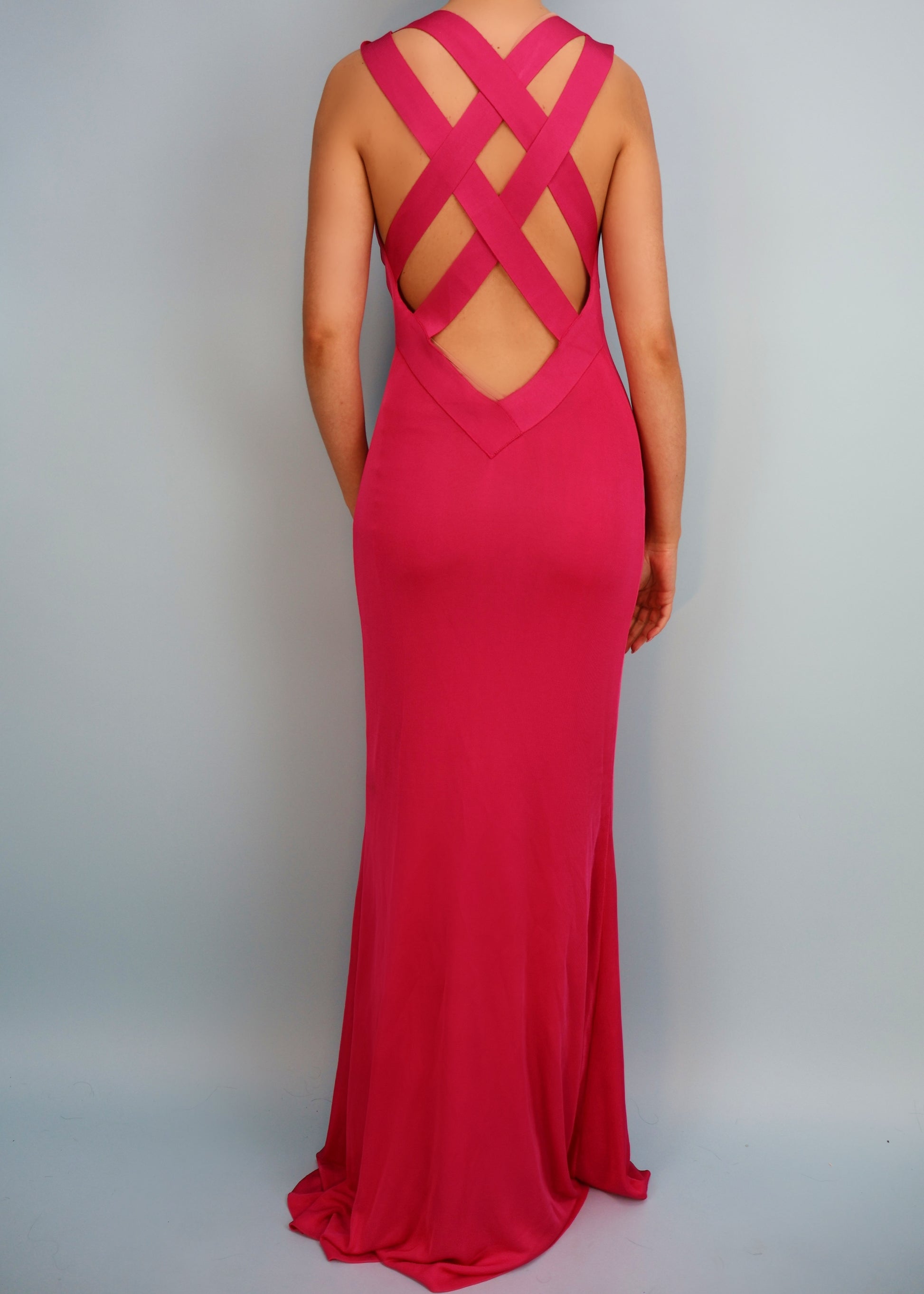 Alexander McQueen Pink Cowl Neckline Cross Back Strap Gown