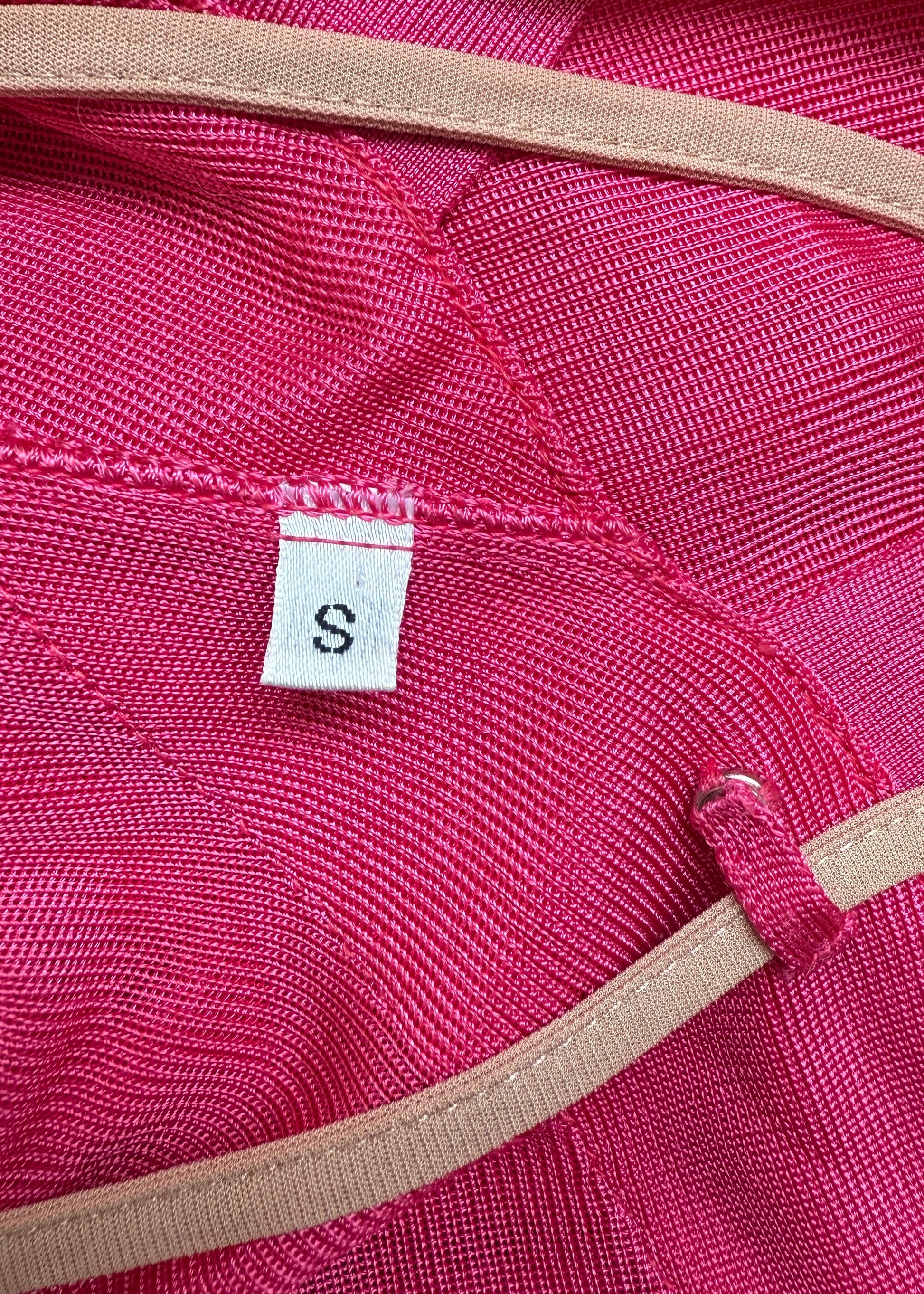 Pink knit cowl neckline gown
